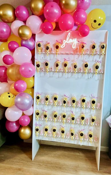 Our rainbow wall is perfect for anyone with a sweet tooth! Guest will not be able to resist. A great tabletop wall if you're throwing a birthday party, sleepover, graduation, shower or any other fun occasion. Watch your friends and family's faces light up over this delightful addition.