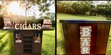 Cigar Bars are the latest & hottest trend! Don’t miss out on impressing your guests with our perfect piece to showcase any cigars. All you do is add the cigars of your choice! We bring the vintage flair and all the tools to accompany it you will need for your event. This bar is also perfect to pair with your favorite bourbon as well since it features 6 decanters. It has all the tools you need to set up for the perfect party!