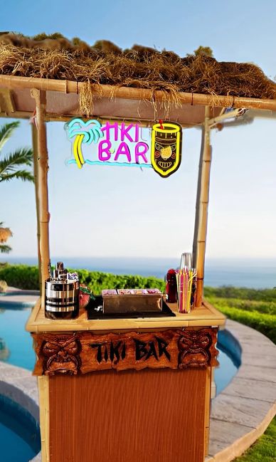 This Tiki Bar is the perfect addition to any event! Great for tailgating, birthdays, BBQ's, weddings, the pool or anywhere you want to have an instant party! The bar is the perfect portable size and designed to have space for a bartender behind it. This rental comes with 2 chairs for anyone that wants to enjoy their drink at the bar and LED lights for a cool yet fun night time look. The back has 1 large shelf and enough space to add a cooler below.