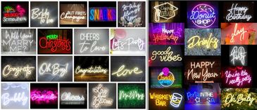 Light up your special moments with these neon lights that energize the mood, enhance the vibe and electrify a space with a whimsical, warm and inviting glow. Bring the fun and excitement with these neon LED lights that will elevate the atmosphere of your party space.