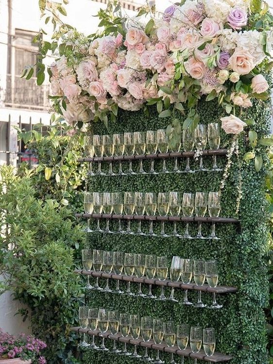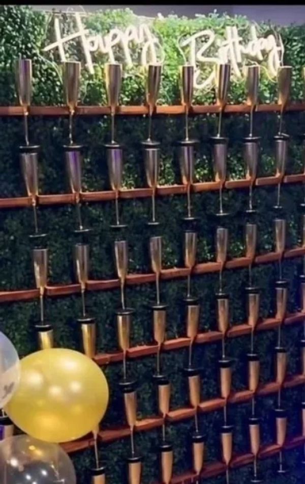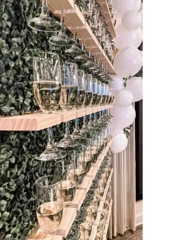 Raise a glass to luxury with our Champagne Wall. This spectacular wall is something to be admired by every guests. This statement piece is classy, elegant and fun. It sets the tone for any party and blends into every wedding or event style. Perfect for bubbly champagne, mi