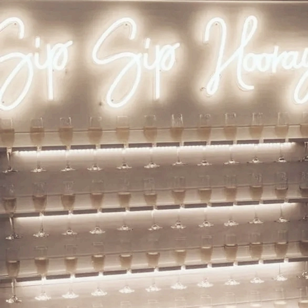 Imagine a piece that captivates your guests and elevates the ambiance of your event with sparking champagne, your favorite wine or a festive drink. This Champagne Wall is just the answer. It is pure white & completely customizable. Add vinyl lettering, our rented Neon Signs or LED lighting for a more dramatic