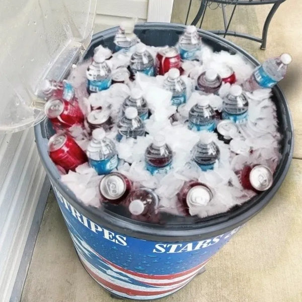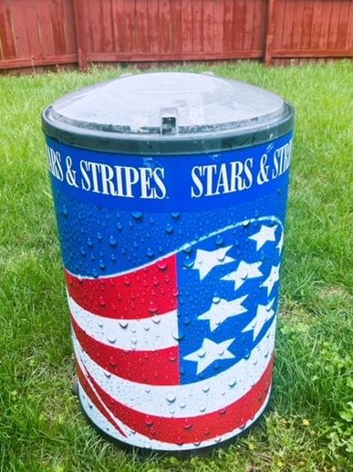 Show off your patriotic side with our one of a kind vintage "Stars & Stripes" Barrel cooler. What a festive way to celebrate Memorial Day, Fourth of July, a BBQ or any party! This Red, White & Blue cooler will keep all your favorite drinks cold while conveniently rolling from the pool to the garage to the back patio. Anywhere you want to move the party it can follow.