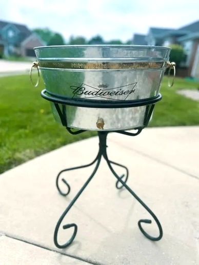This Budweiser galvanized beverage stand is a unique addition to your next event! Whether you want to showcase the King of Beers or simply use it for beverages you want to keep close by & on ice. It will add class and convenience to any backyard BBQ, outdoor wedding, pool party or large event.