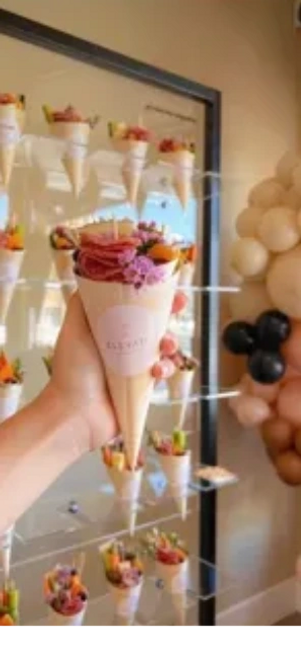 This glamorous wall is the ultimate showstopper! Not to mention the perfect chameleon piece to enhance any style event. It looks beautiful adorned with so many different style offerings whether it be drinks, appetizers or desserts. It is fun way to greet your guests, give out party favors or to introduce a tasty treat or refreshment. It holds 70 glasses or cones and includes one of our neon light rentals of your choice. Book it now to give your party a touch of whimsical charm and classic elegance that will appeal to all ages.