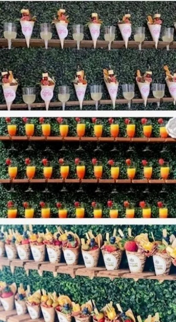 This stunning wall can also be used for hors d'oeuvres, desserts and favors too.