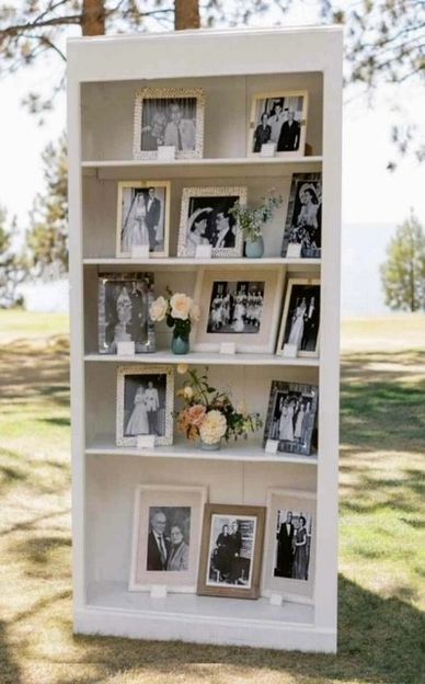 This touching & sentimental wall is perfect to hold treasured memories of your family. It can feature baby pictures of the parents to be at your baby shower, the dating history of the bride & groom leading to their special day , the anniversary couple throughout the years or as a memorial to loved ones who have passed to be honored at the celebration. It includes 15 frames. You can customize the look with frame sizes & colors.